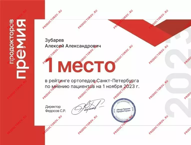 Специалистом пройдена периодическая аккредитация 27.09.2022 в федеральном государственном бюджетном образовательном учреждении дополнительного профессионального образования "Российская медицинская академия непрерывного профессионального образования" Министерства здравоохранения Российской Федерации по специальности "Травматология и ортопедия", наименование профессионального стандарта "Врач-травматолог-ортопед". Решение аккредитационной комиссии действительно до 27.09.2027.У Алексея Александровича Зубарева развиты навыки проведения разнообразных процедур и манипуляций, включая консервативное и хирургическое лечение остеохондроза и межпозвоночных грыж, а также постановку блокад, включая озоновые и паравертебральные блокады различного уровня сложности. Кроме того, он также осуществляет PRP-терапию.